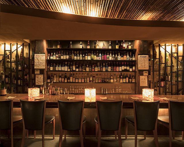 ≪お一人様・サク飲みも大歓迎♪≫暖色の間接照明の落ち着いた雰囲気。落とした照明の中でテーブルライトが灯るカウンターは桜一枚板で高級感も。お一人様でリラックスしてお酒をお愉しみ頂くのももちろん、デートにも好評です。