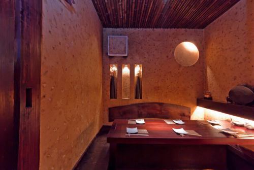 榻榻米房间,内设下沉式暖桌,可容纳六人。聚光灯能使食物和饮料更加突出。另提供可容纳 8-9 人的独立座位。